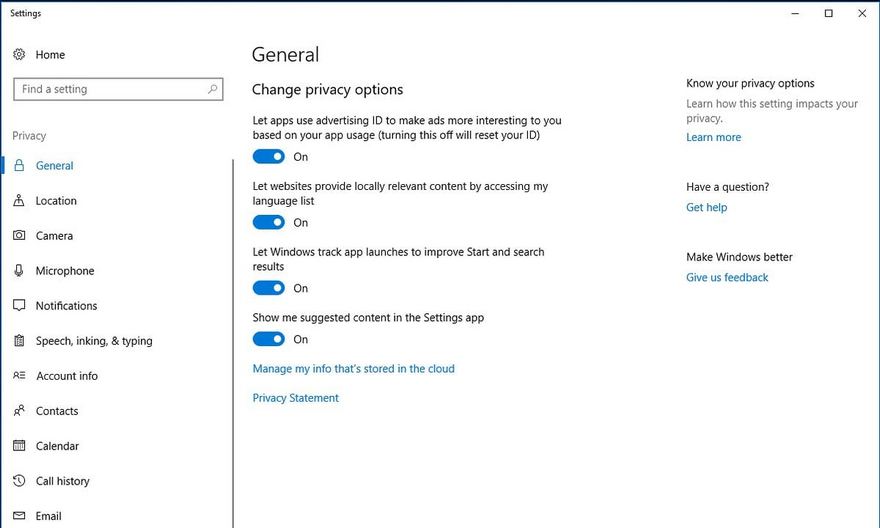 (Side note, if you have Windows 10 installed, this is a picture of just the privacy options with 16 different sub-menus, which have all of the options enabled by default when you install Windows 10)