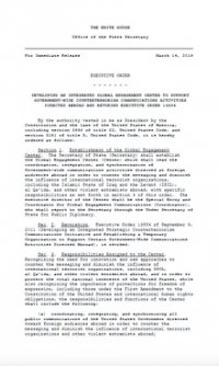 President Obama has decided to replace the «Center for Strategic Counterterrorism Communications», created in 2011, by a «Global Engagement Center». To that end, on the 14th March 2016, he signed a secret decree – but a copy is already in circulation (see document below).